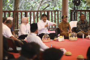 Jelang kerja bakti untuk merevitalisasi Taman Hutan Raya (Tahura) Ngurah Rai, Bali, Selasa (25/2), Menteri Sosial Saifullah Yusuf (Gus Ipul) berdialog dengan berbagai pihak di pendopo kawasan Tahura pada Senin (24/2).