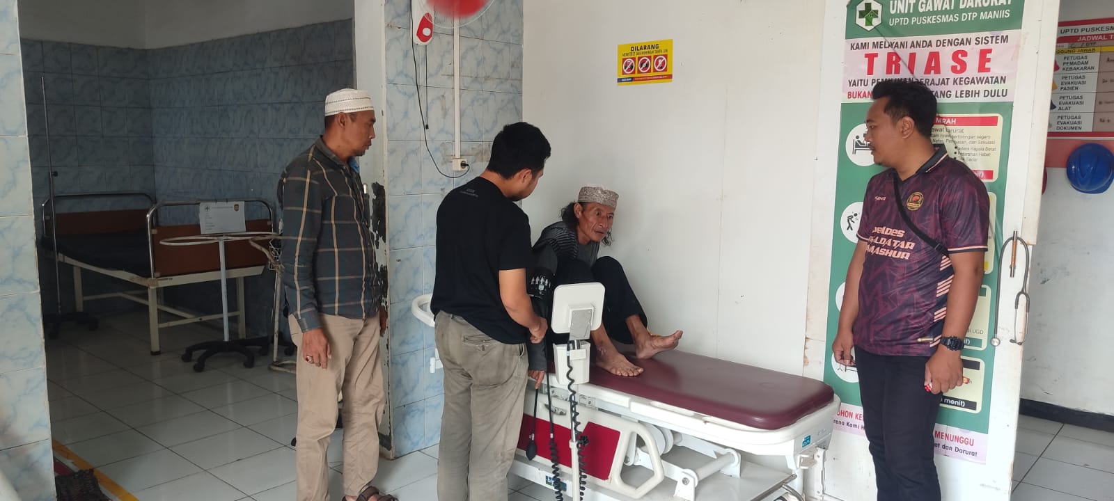 Saat warga tersebut beserta keluarga menyambangi kediaman lurah, dengan respek cepat tanggap kepala desa yang berencana untuk melanjutkan kepemimpinan nya dengan tindakan pertama membawa warga nya langsung ke puskemas kecamatan Maniis.