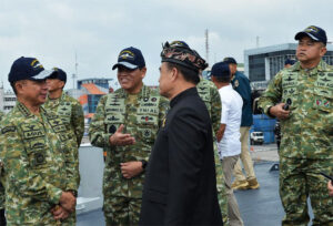 Laksamana TNI (Purn) Ade Supandi (tengah), Pinisepuh II MMS sekaligus tokoh senior Angkatan Laut dari Tatar Pasundan yang hadir dalam acara penyambutan KRI Prabu Siliwangi 321 – (Sumber: AS)