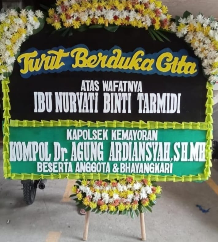 Selain mengirimkan karangan bunga, Kapolsek Kemayoran, Kompol Dr. Agung Ardiansyah S.H., M..H juga menyatakan duka yang mendalam kepada keluarga korban.